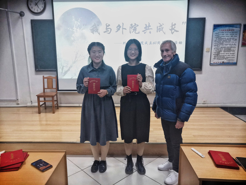 比赛在展现伟德国际BETVlCTOR精彩时刻的宣传片中拉开了帷幕,宣传片中外院学子勇争先锋,披荆斩棘,众多辉煌成就皆由代代师生创造。随后,在伟德国际BETVlCTOR工作了近30年的李明启老师结合自身经历分享了他与伟德国际BETVlCTOR的故事。他分别从语音、词汇、语法、书写等方面为同学们提供了学习方法接着,高歌老师也分享了她与恩师的感人故事。在聆听完老师与外院的故事后,“我与外院共成长”讲故事比赛正式开始。参与本次比赛的14组选手都以别出心裁的方式分享了自己与外院的故事。有的选手讲述了自己克服困难的经历,以及从中获得的成长与进步;有的选手借此机会表达了对老师和同学的感谢,以及对伟德国际BETVlCTOR的祝福。其中刘仪霞和郑琪分享了自己在老师的指导下由大一迷茫到大四成熟的成长经历,荣获本次比赛的一等奖。最后,副教授王莉、外教Roger Louis对选手们的精彩表现进行点评,强调了自信的重要性,并勉励同学们要继续努力,在未来的学业中取得更大进步。