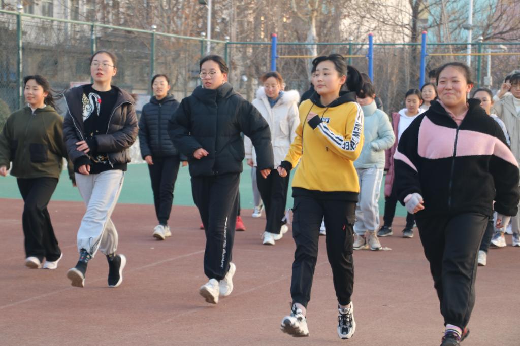 寒风凛冽,却不能磨灭同学们冬训的热情。冬训伊始,同学们首先开展热身活动。简单而有效的热身准备后,同学们在跑道上有序集合,在教练的指导下,进行速耐与力量的练习。速耐训练首先开始,同学们按照分组开展了有针对性的练习。一组训练过后,老师们来到同学们身边亲切慰问,并叮嘱训练后及时添衣,保证身体健康。随后,同学们以饱满的状态继续力量训练。尽管气温较低,同学们仍满怀激情,认真完成训练任务,展现出昂扬向上的精神面貌。老师们在观看训练过后对同学们的训练状态做出了高度评价,并对同学们在校运动会中的表现寄予深切期望。