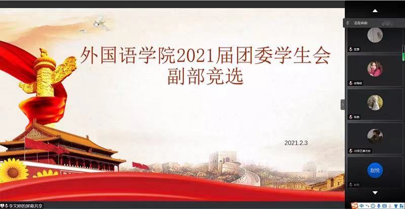 为配合各项员工工作开展,增强员工干部活力,2月1日至2月3日,伟德国际BETVlCTOR于线上举行团委员工会副部竞选活动。本次竞选面试由辅导员冀玉珍、张晓、王伟、赵文彬,团委员工会2020届各部门部长、2021届主席团及各部长分小组担任评委,各部门干事积极参与。
