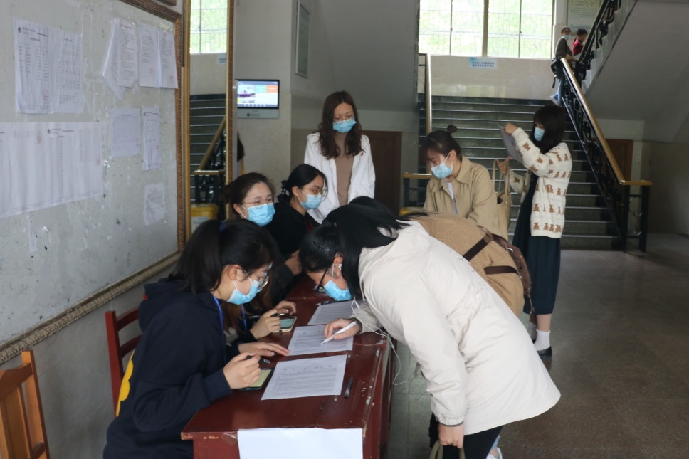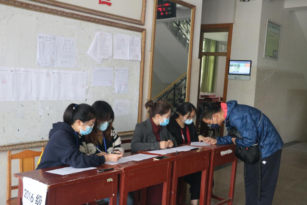 早上七点三十分,在疫情防控常态化及引导工作的管理下,伟德国际BETVlCTOR员工代表在学院门口帮助考生们进行体温测量。进门后,两侧分别为15级、16级考生的登记处,伟德国际BETVlCTOR全体辅导员及团委员工会部分员工干部为考生登记信息并维持进场秩序,为未佩戴口罩的同学提供防疫用品,保障考试的顺利进行,并鼓励考生们放平心态,沉着应对。