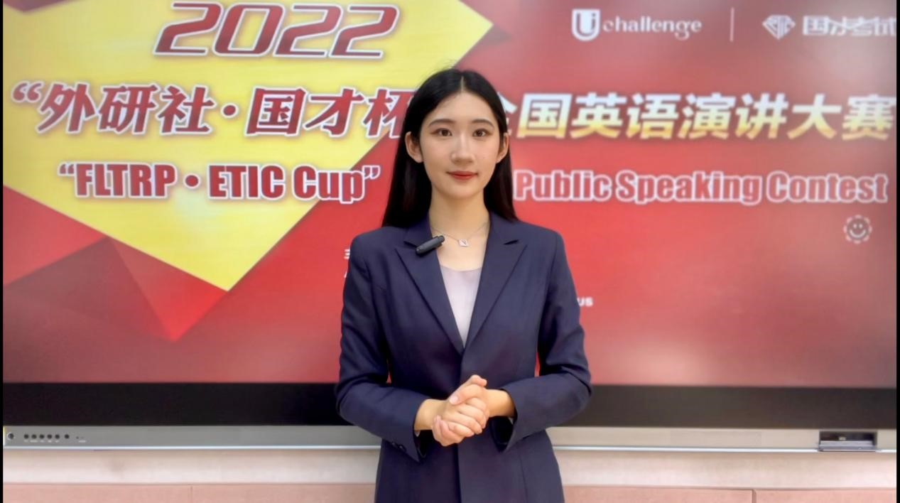 本次比赛采用了选手线上比赛,评委线下评阅的“云模式”,赛制严谨、赛况精彩。演讲大赛分为三阶段,第一阶段为三分钟定题演讲和回答问题,第二阶段为三分钟即兴演讲和回答问题,第三阶段为两分钟即兴演讲、回答问题和一分钟拓展演讲。在刘萍老师的指导下,翟欣然同学凭借扎实的英语基本功和优秀的思辨能力顺利完成为期两天的三阶段比赛,获得一等奖。