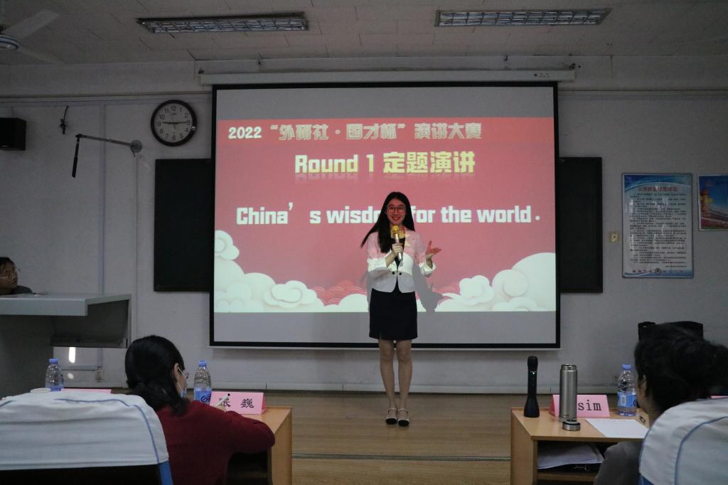 本次比赛采取晋级制。晋级标准为选手累积得分,由八位评委现场打分,最终取前两位晋级山东省复赛。比赛分为定题演讲及问答、即兴演讲及问答和图片描述三个环节。在定题演讲及问答环节,选手以China's Wisdom for the World为主题,定题演讲3分钟,回答评委提问1分钟;在即兴演讲及问答环节,选手于候场室内抽题,准备20分钟后,即兴演讲2分钟,回答评委提问1分钟;图片描述环节,选手现场抽取顺序,上场准备1分钟后对图片展开描述,描述时间为2分钟。面对寓意丰富的图片,参赛选手们镇定且自信地从整体到部分、从过去、现在到未来等角度进行描述,赢得了评委老师的一致好评。其中凭借强大的英语素养与良好的思辨能力,翟欣然同学荣获本次比赛特等奖,张炜焱获得一等奖,王孜淳获得二等奖。