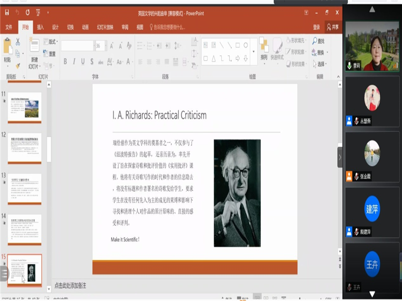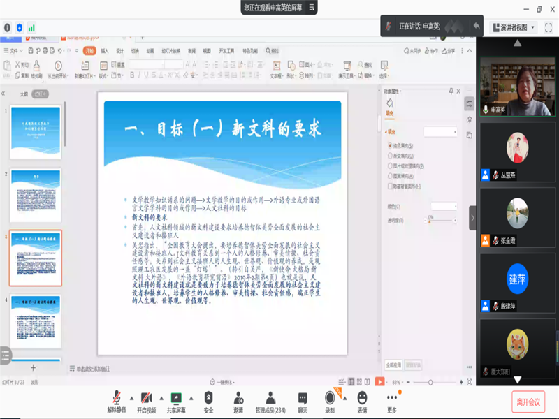 首先,南京大学的杨金才教授就新世纪外国文学的创作和发展趋势展开讲解。接着,北京大学、石河子大学的程朝翔教授对新文科与文学的关系展开深刻探讨。随后,美国爱丁堡大学的黄桂友教授就文学研究的目的性与实用性展开了专题分享。然后,杭州师范大学的周敏教授介绍了英国文化研究对外国文学课程思政的启迪。之后,清华大学的曹莉教授介绍了英国文学在剑桥大学的兴起。山东大学的申富英教授分享了新文科建设与外国文学知识谱系。最后,伟德在线登录平台的林瑛副教授对本次论坛做总结发言并感谢各位专家学者的学术分享。